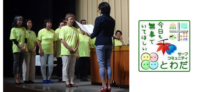 | ●十和田市では、市職員や住民たち有志により「セーフコミュニティ十和田を実現する会」が結成され、認証にむけて様々な安全向上の取り組みが展開されました。2009年にSCとして認証されてからは「SCとわだを進める会」と名称を変更し、対策委員会の構成員となるだけでなく、市民の安全向上にむけた取組みを推進しており、2015年の再認証に向けても大きな牽引力となりました。 (写真は、2016年8月に当機構からこれまでの取り組みを表彰させていただいたときの様子です。) 「手をつなごう とわだのセーフティネット チラシはこちら」 |